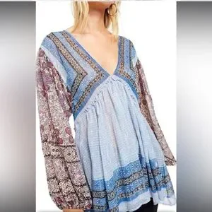 NWT, Free People, Blue Aliyah Printed Tunic, Blue Combo, M