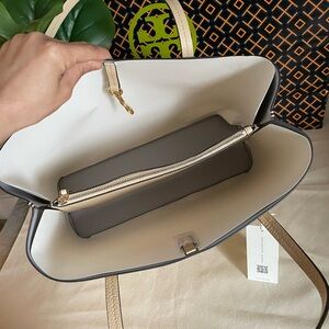 New, tory burch Blake center zip tote bag soft serve/bay gray