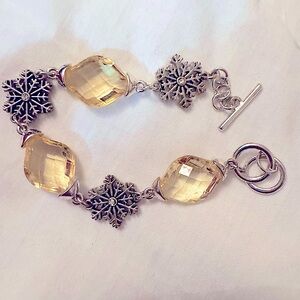 This elegant bracelet features a stunning Snowflakes of silver complimented by soft yellow cut crystal beads, perfect for adding a touch of sophistication to any outfit.
