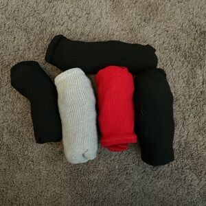 Knee high Softball/Baseball socks in black (x3), red, and light grey