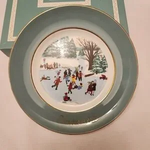 Avon Christmas Plate 1975 Skaters on the Pond