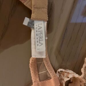 This exquisite cream bra features a delicate lace design with an intricate floral motif, offering a romantic and elegant touch. The scalloped edges add a sophisticated detail, while the adjustable straps ensure a comfortable fit. Perfect for adding a touch of luxury to your intimate collection. La Perla top of the line made in Italy