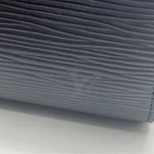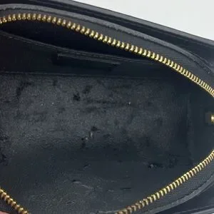 Exceptional Black Epi Leather Dauphine Clutch featuring tapered sides and rounded top corners. Wrap around zipper opens to gray and black interior. Slip pocket with designer name plate. Beautiful as a clutch or could be easily converted into a crossbody. Excellent condition. Made in France. Unisex.