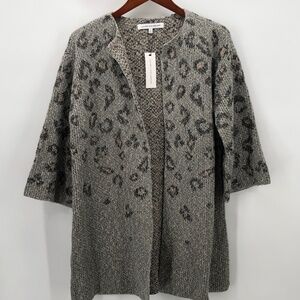 Cupcakes & Cashmere Kline Tonal Leopard Cardigan with an open front. Size Large. New with Tag.
