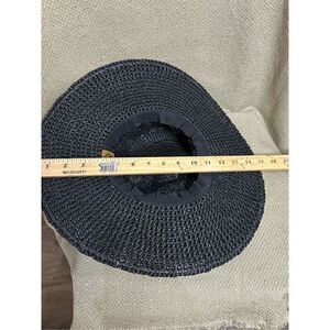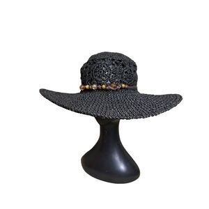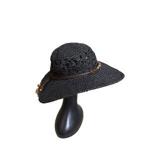 Scala Collection Womens Sun Hat Black Hand Crafted Woven Bead Bow Back One Size