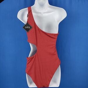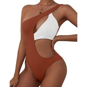 ZAFUL Women's One Shoulder Ribbed Bikini Colorblock Cutout One-Piece Swimsuit