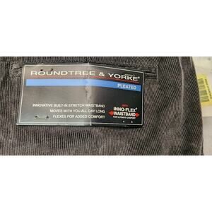 Roundtree & Yorke Mens New Inno Flex Pleated Front Corduroy Pants Gray 38W X 36L