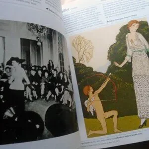 Check the second photo and you will see what this book is all about. This small coffee table book-extraordinaire is a wonderful look at fashions and fashion history with information about fashion designers and fashion photographers. The editorial photographs from past high end fashion magazines are extraordinary and so much fun to look at. Small book packs a big punch, paperback, but thick!