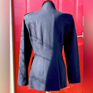 ANN TAYLOR sM military style jacket-wool/viscose bld-looks new-very elegant. This is a very dark navy; in some lighting it looks black