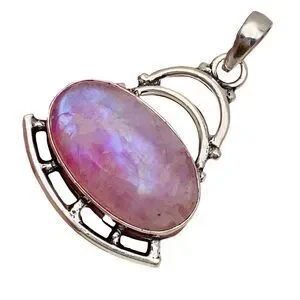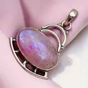 Pink Rainbow Moonstone Solid 925 Sterling Silver Pendant