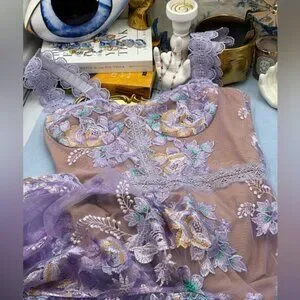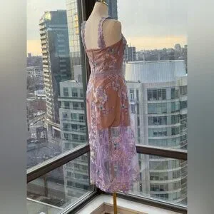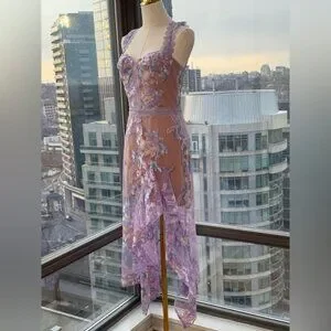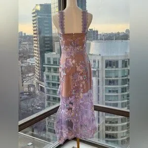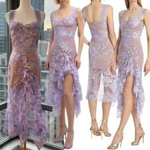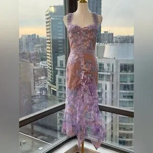 🆕 BRONX & BANCO 🧿 NWOT Eva Embroidered High-Low Midi Dress, Purple Sz M US 6