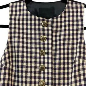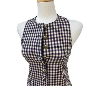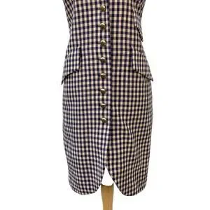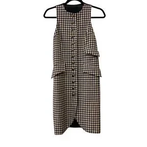 Anna Sui Shift Dress Sm Wool Purple Black Checkered Sleeveless Preppy Academia