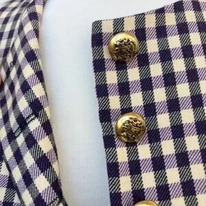 Color: purple and black checkered pattern on a cream background. Black lining and back.