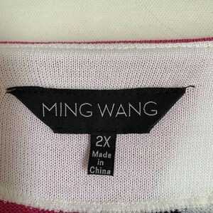 Ming Wang Cardigan 2X Colorblock Acrylic Knit Black Pink 3/4 Sleeve Relaxed. Excellent pre-owned condition.