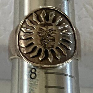 Vintage sterling silver sun signet ring. Beautiful and in good condition. Some slight scratches on the band. Almost no tarnish. A handsome ring for any day wear. About a size 7 1/2. For men or women.