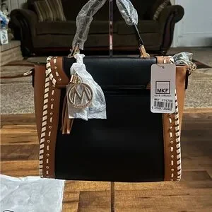 MKF Collection by Mia K Flora ~ Brown/Beige Leather W/ Flora Satchel Bag ~ New