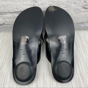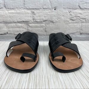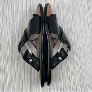 NEW Rag & Bone August Croc Embossed Leather Slide Sandals In Black