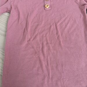 Cozy pink ribbed set with long sleeves and matching pants. Perfect for lounging or casual wear.