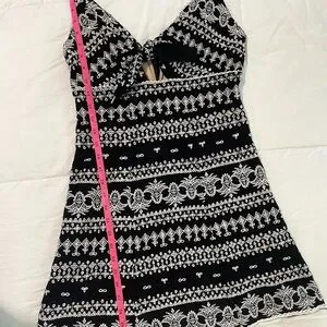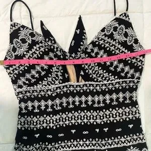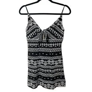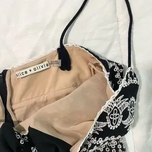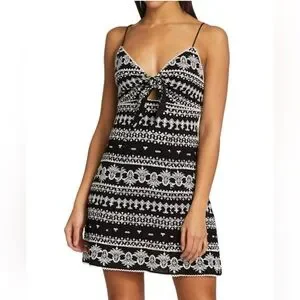 Alice & Olivia Roe Embroidered Fit Flare Mini Dress Tie Front Detail SZ 6 EUC