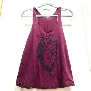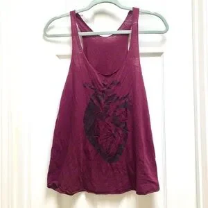 American apparel F size Large, long flattering racer back tank in purplish burgundy with screen printed anatomical heart graphic. Worn a few times, some light pilling and wrinkles, otherwise great condition!