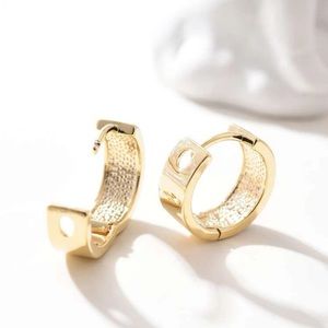 Description: These are stylish gold huggie hoop earrings featuring a bold black and white enamel checkerboard design. The small chunky shape hugs the earlobe closely for a sleek modern look while the glossy geometric pattern adds a playful retro vibe. They’re perfect for everyday wear or as a statement piece to elevate a minimal outfit.