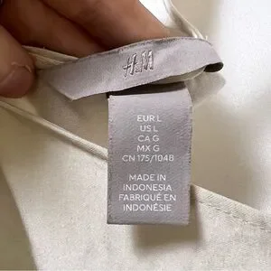 Hi, everyone! This ivory satin-blend tank from H&M’s Premium Selection line is a size L and offers a sophisticated, minimal look. It has a scoop neckline, wide shoulder straps, and a discreet side zipper for easy wear. Measuring about 19” across the chest and 24” from the shoulder, it’s gently pre-loved and in excellent condition. Dress it up with trousers or pair it with jeans for effortless style!