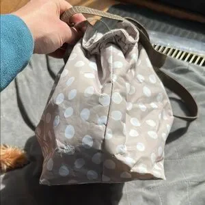 The bag is made from durable vinyl material and features an insulated lining to keep your food at the perfect temperature. The brown canvas handles add a stylish touch and are comfortable to hold. Super cute in good condition remember to check out the rest of my closet bundle and save