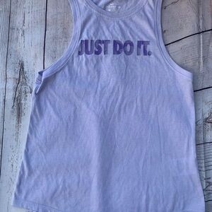 The Nike Tee Purple Tank Size XS. Made in Vietnam. 50% Polyester, 25% cotton, 25% rayon. Pit to pit 14”