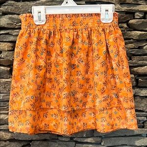 This vibrant orange floral skirt is perfect for spring! Elastic waistline! Size 10