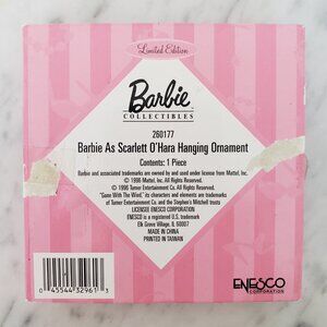 Add some holiday cheer to your collection with this Barbie as Scarlett O'Hara collectable Christmas ornament! Made by Enesco, this ornament features porcelain construction, openwork gold trim, and a maroon tassel and hanger. This ornament is a must-have for any Barbie, Gone with the Wind, or ornament collector.