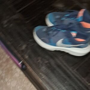 Stylish Nike sneakers in blue and white. Features a unique design with a comfortable fit.
