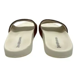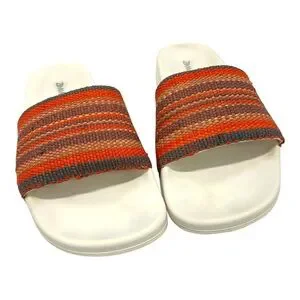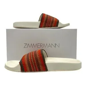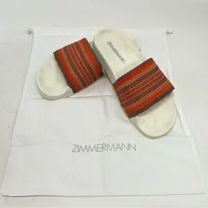 Zimmermann Beach Stripe Woven Raffia Pool Slides Red and Orange Sandals Women 39