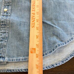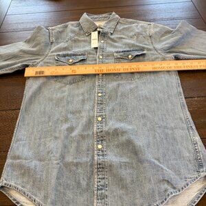 we made this rugged denim shirt with details like a western yoke, snap front and two snap-closure chest pockets. Dyed with real indigo, this shirt will look better over time and gently fade the more you wear it, just like your favorite jeans.