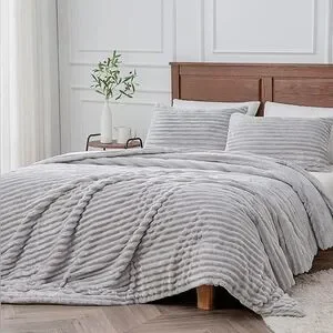 Full Size - 3 Piece Fluffy Duvet Cover Set - Cover & 2 Pillow Cases