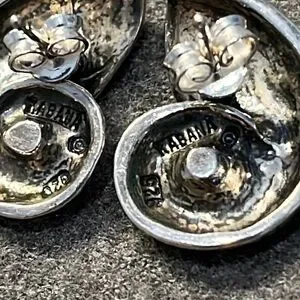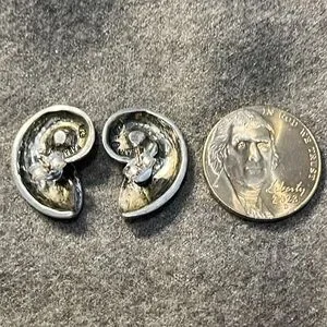 Kabana Sterling Nautilus Shell Earrings. Stamped 925 KABANA. Approximately 7/8”, weight is 8.7 grams. Clutch backs on posts. Beautiful detail & 3-D dimensions depicting a nautilus shell. Kabana is known for handcrafted jewelry made in the USA, often featuring designs inspired by nature and wildlife. Excellent condition. Smoke free & pet free home.