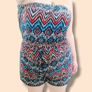 Eye Candy | Cool-Toned Patterned Romper/Jumpsuit | Size 1X Large | NEW | NWOT |โ