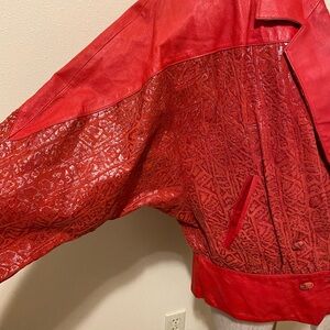 This stylish red jacket is perfect for adding a bold touch to your wardrobe. Its vibrant color and unique design make it a standout piece for any occasion. Vintage 80’s.