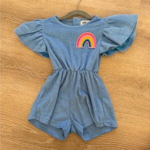 Brighten up your child's wardrobe with this blue rainbow onesie from Lola + The Boys. Perfect for playful days. Size 4. Worn 2x, like new