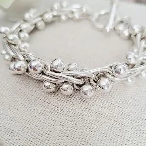 VINTAGE RARE Silpada DNA Mexico Ball Link Sterling Silver Toggle Bracelet