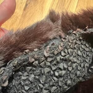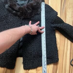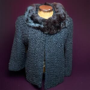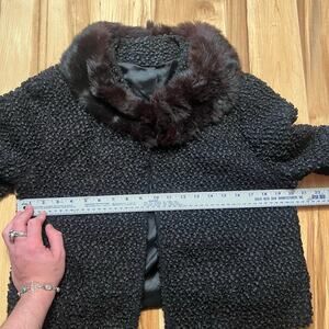 VINTAGE 60s Rabbit Fur Collar Swing Jacket Size S Black Loop Textured