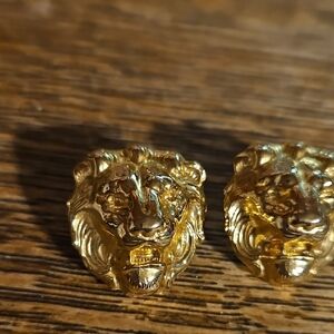 Elegant gold lion head earrings perfect for adding a bold statement to any outfit.