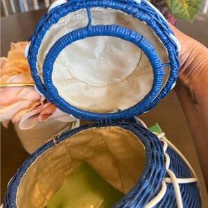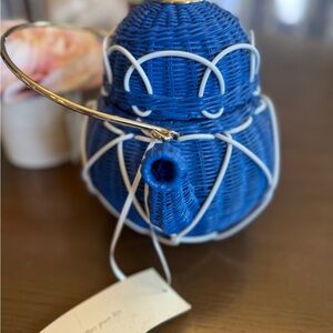 Kate spade down the rabbit hole wicker teapot and coin purse.