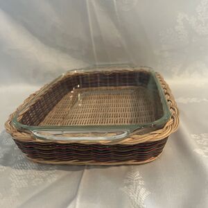 Vintage PYREX 2 Qt. 11x7x1.5” Casserole Dish #232-R With Original Wicker Basket