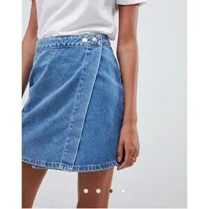 Embrace the classic denim look with this chic ASOS wrap skirt, a must-have for any fashion-forward wardrobe. The skirt features a solid blue color that offers versatility and ease of pairing with a range of tops and accessories. Tailored for a regular size 4 fit, it's designed to flatter your figure while providing comfort.