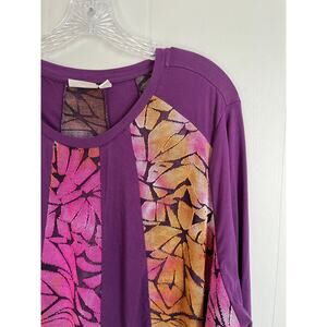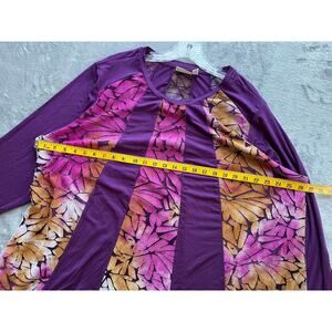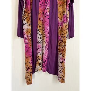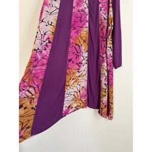 LOGO Lori Goldstein Pieced Jacquard Dress 1X Plus Size Flowy Baggy Asymmetric Colorful Stretchy Long Sleeves Tunic