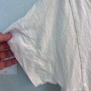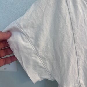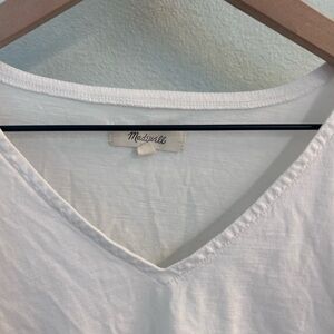Elevate your wardrobe with this stylish white V-neck top. Perfect for any occasion, this top offers both comfort and elegance.