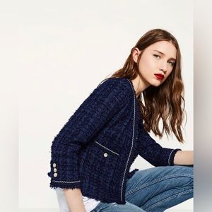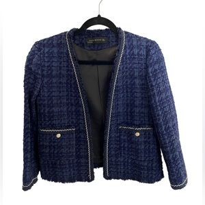 Zara Navy Tweed Blazer with Gold Buttons