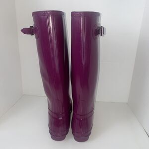 Hunter Wellies Rain Boot Size 8 Dark Pink Magenta Purple Glossy