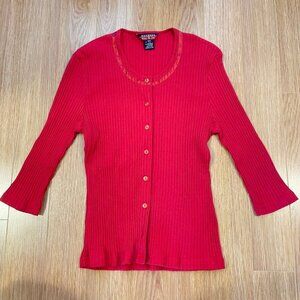 Vintage Mac & Jac Red 3/4 Sleeve Button-Up Cardigan - M