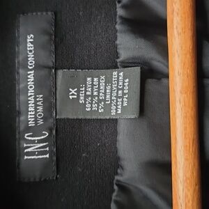 This sophisticated black blazer from INC features a chic style with a tie waist for a flattering fit. The standout ruffled trim adds a touch of elegance, while the smooth fabric enhances its stylish appeal. Perfect for elevating your wardrobe with a modern twist.